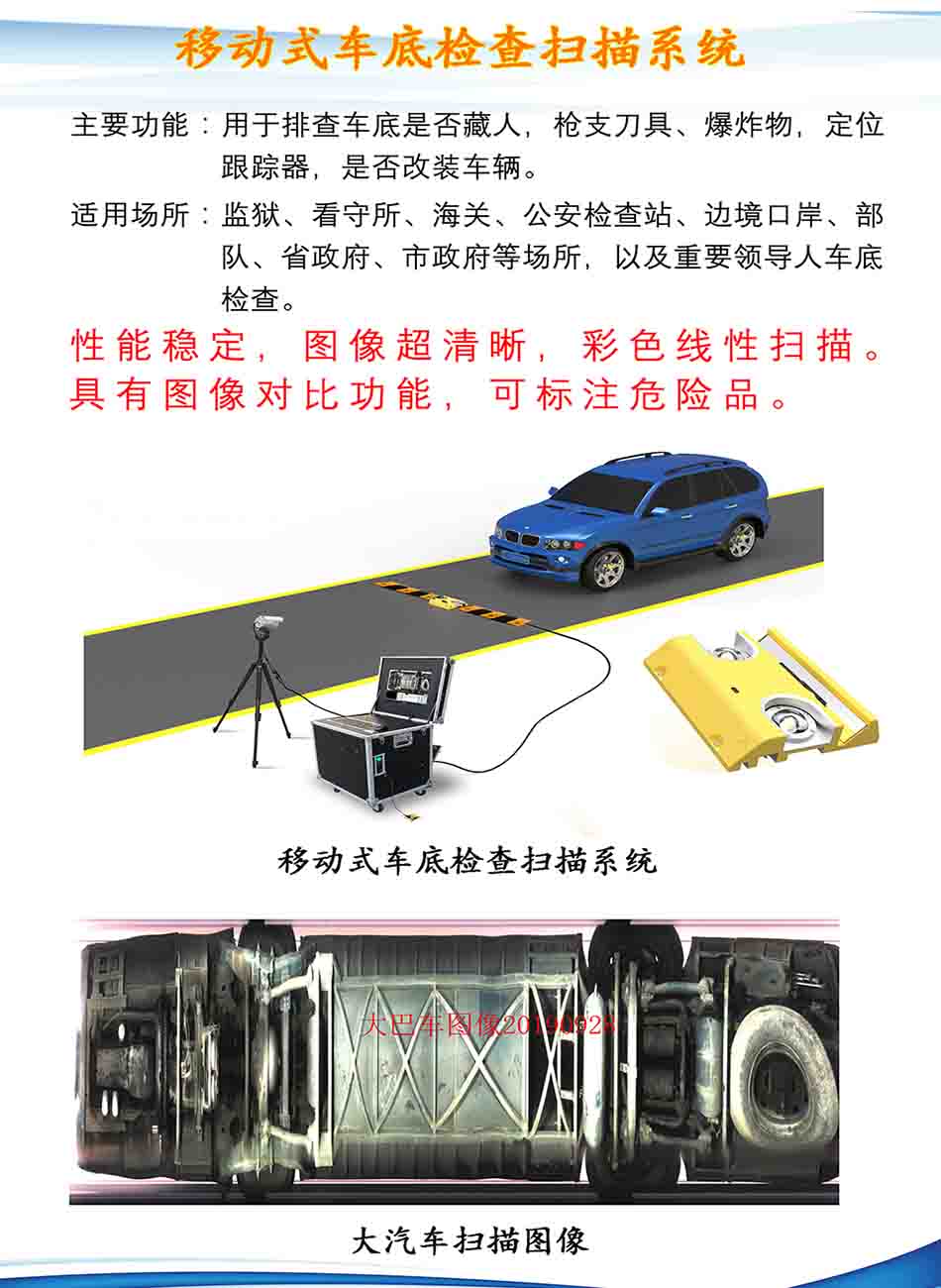 2、车底完整成像,无任何遗漏,且图像清晰、完整、无畸变,能清晰观察到不小于直径2mm物体。
